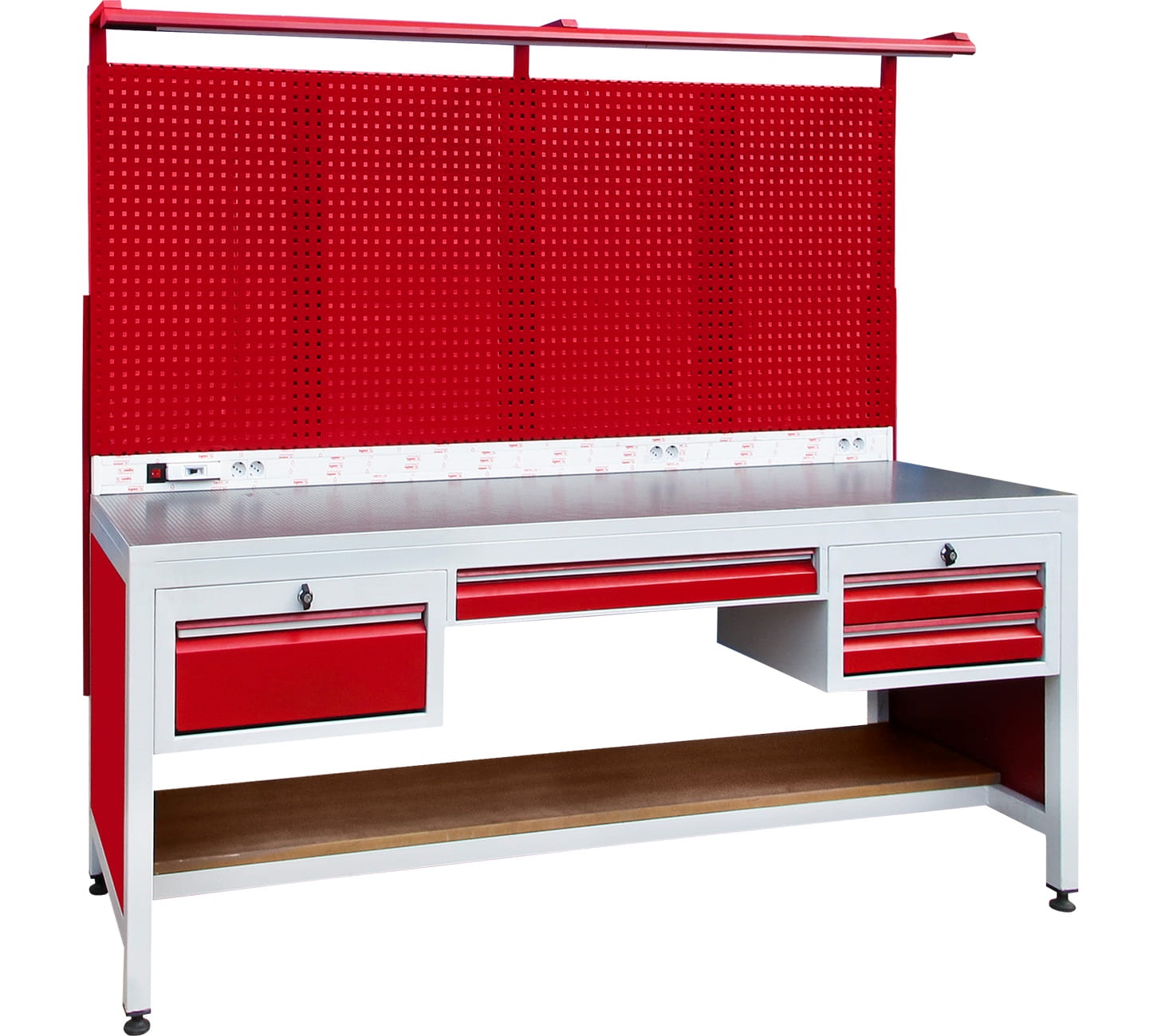 Alt Tablalı Çalışma Tezgahı, 4 Çekmeceli, Aydınlatmalı, 6 Prizli