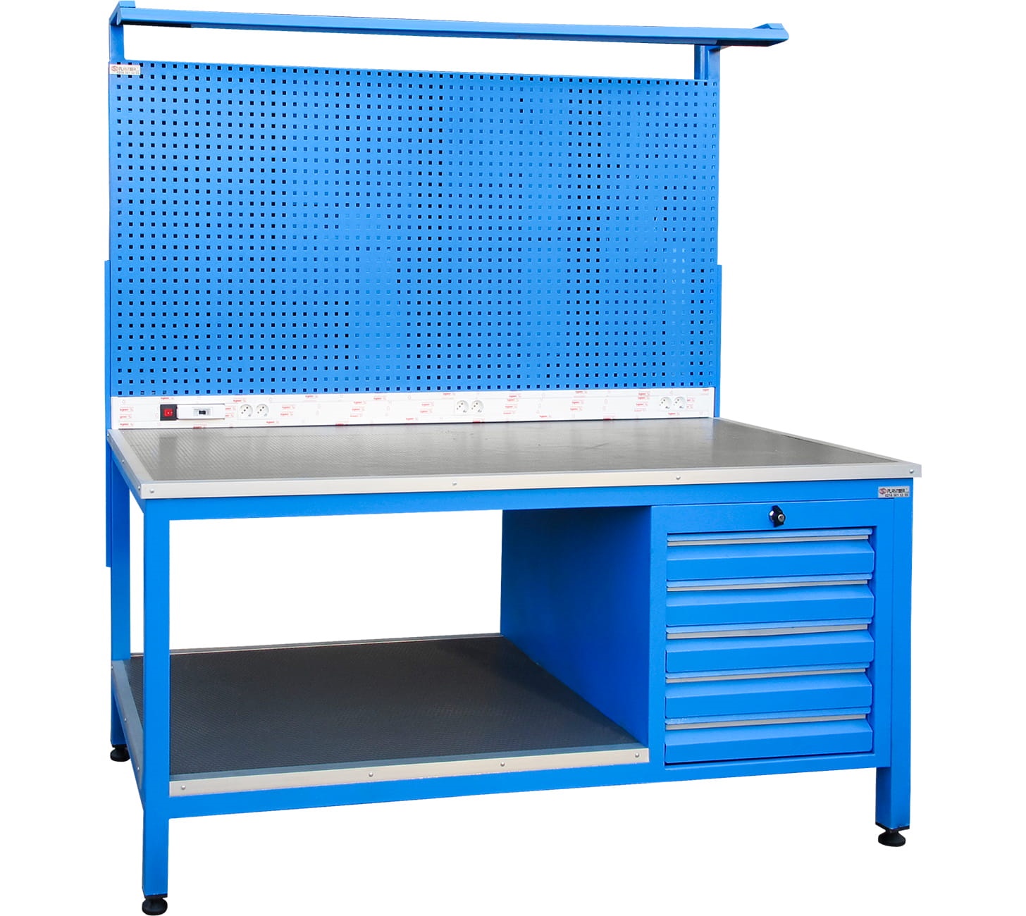 Alt Tablalı Çalışma Tezgahı, 5 Çekmeceli, Aydınlatmalı, 6 Prizli