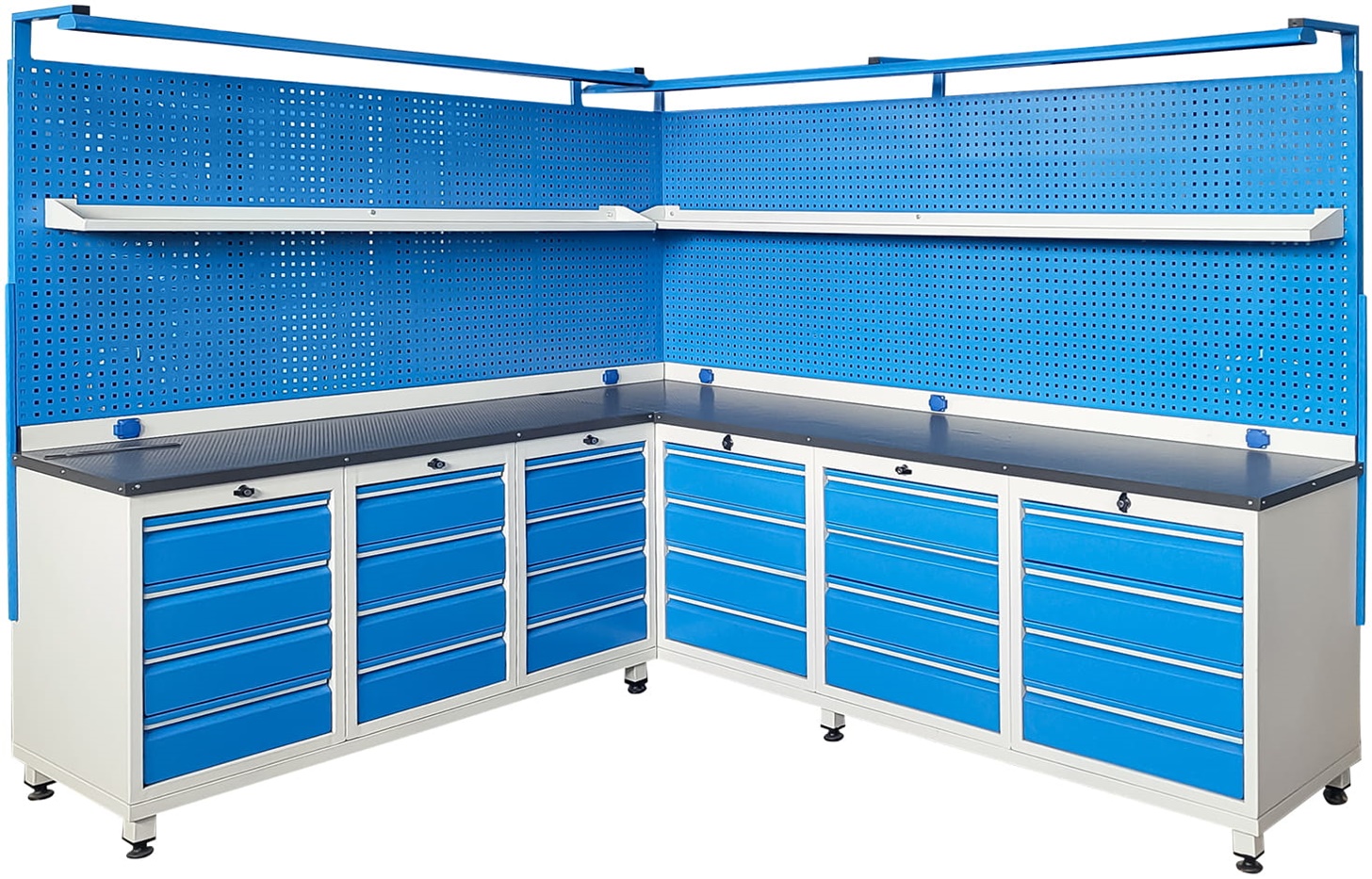 L Köşe Çalışma Tezgahı, 24 Çekmeceli, Aydınlatmalı, 5 Prizli
