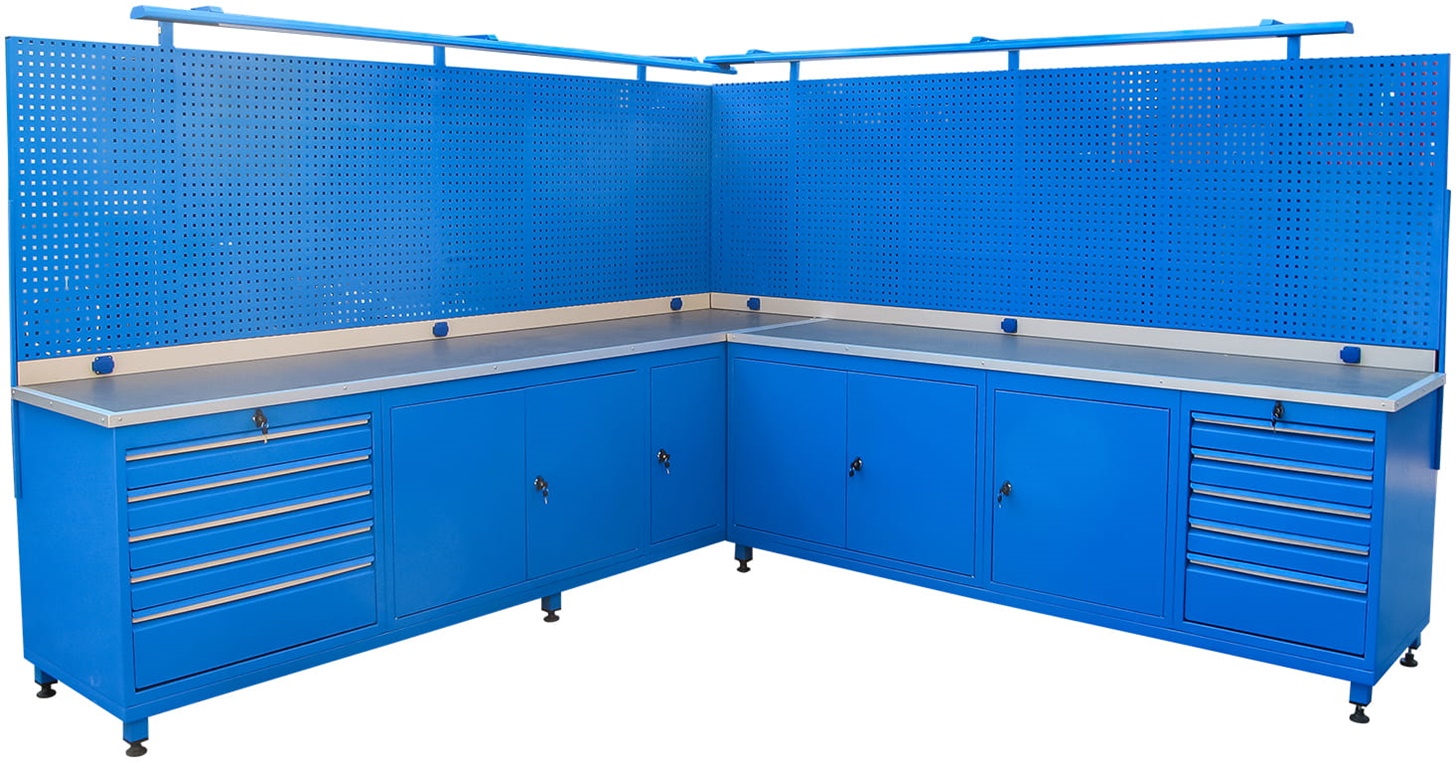 L Köşe Çalışma Tezgahı, 10 Çekmeceli, Aydınlatmalı, 2 Prizli