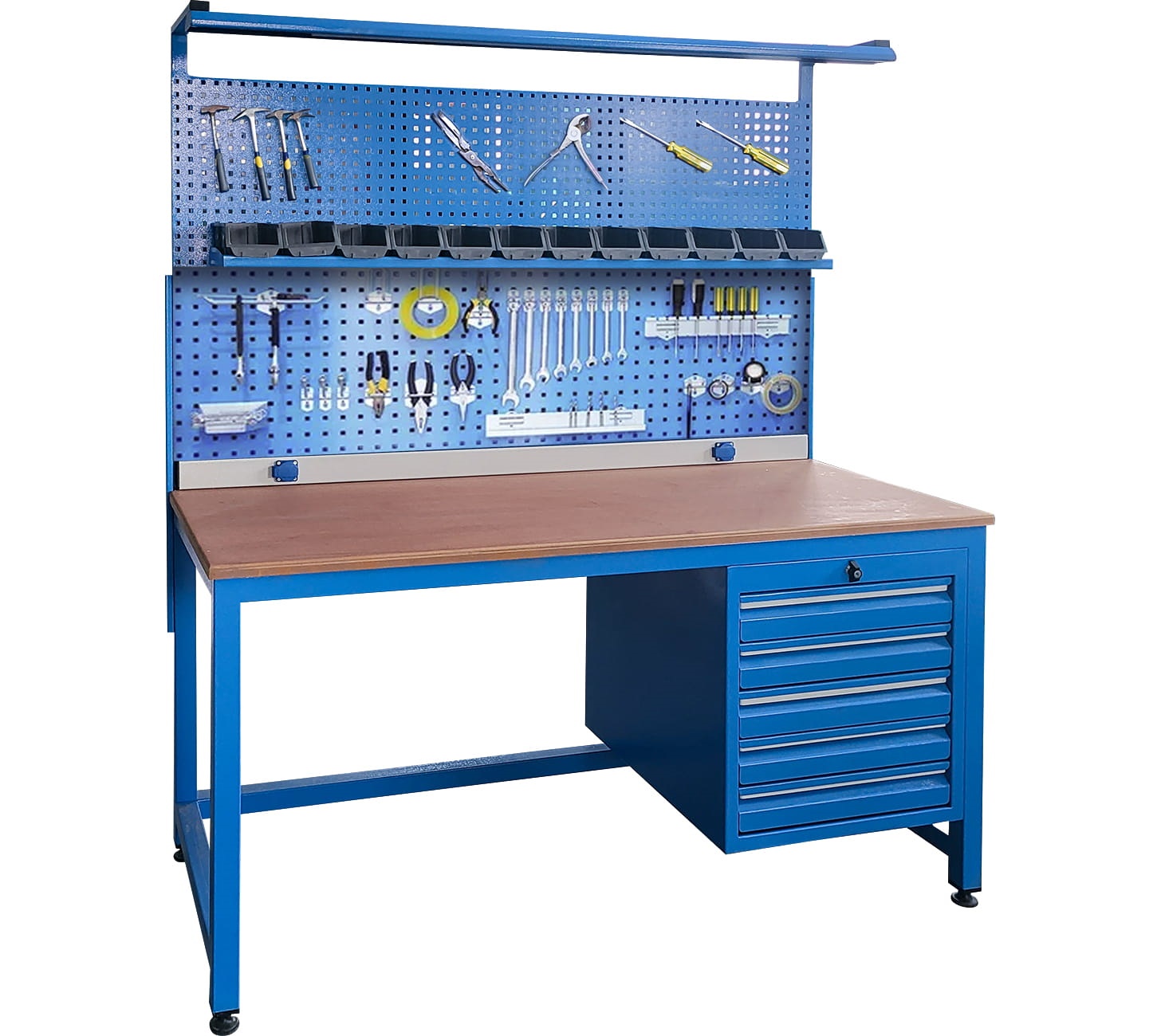 Masa Tipi Çalışma Tezgahı, 5 Çekmeceli, Aydınlatmalı, 2 Prizli