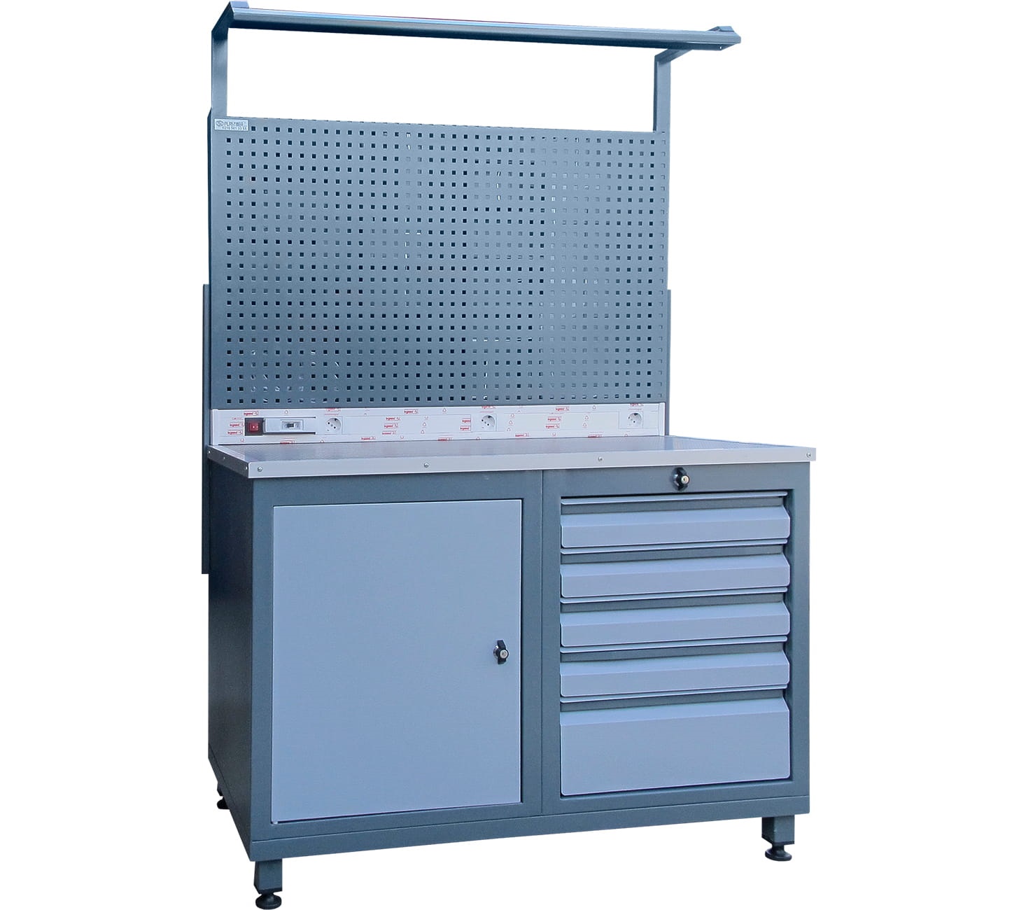 Panolu Çalışma Tezgahı, 5 Çekmeceli, Aydınlatmalı, 3 Prizli