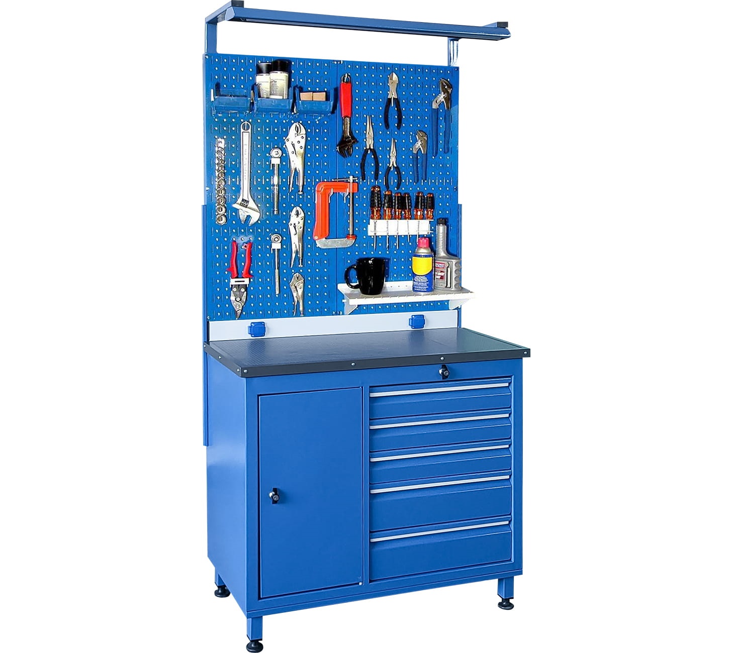 Panolu Çalışma Tezgahı, 5 Çekmeceli, Aydınlatmalı, 2 Prizli