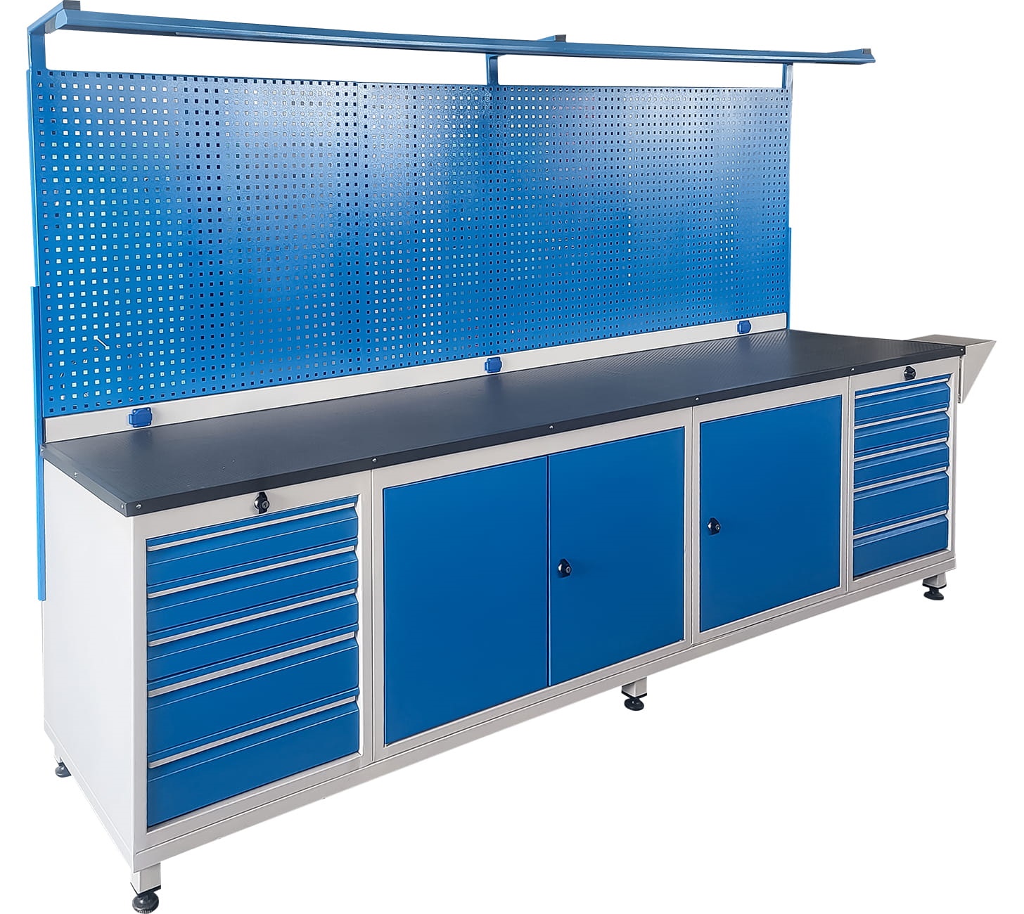 Panolu Çalışma Tezgahı, 10 Çekmeceli, Aydınlatmalı, 3 Prizli