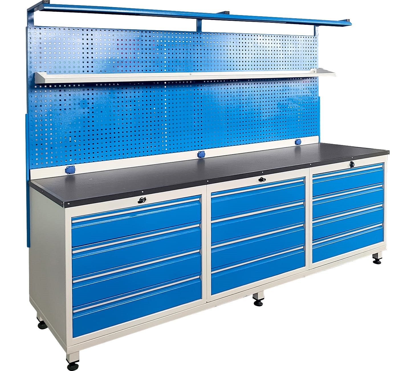 Panolu Çalışma Tezgahı, 12 Çekmeceli, Aydınlatmalı, 3 Prizli