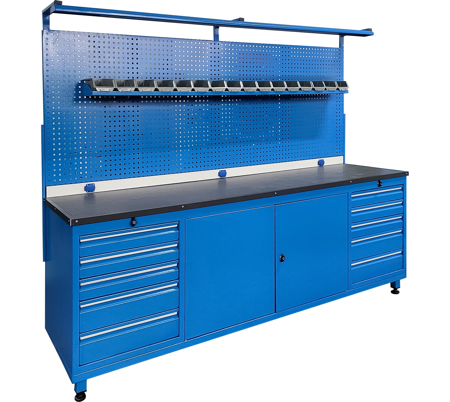 Panolu Çalışma Tezgahı, 10 Çekmeceli, Aydınlatmalı, 3 Prizli