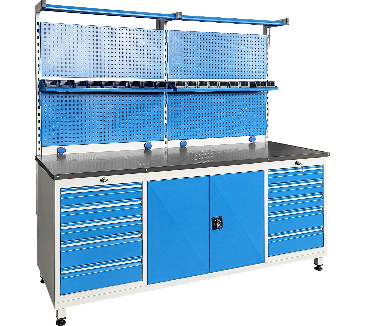 Panolu Çalışma Tezgahı, 10 Çekmeceli, Aydınlatmalı, 4 Prizli