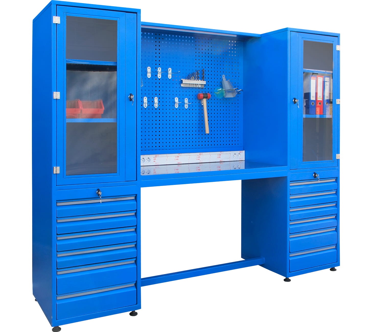 Panolu Çalışma Tezgahı, 6 Çekmeceli, Aydınlatmalı, 4 Prizli