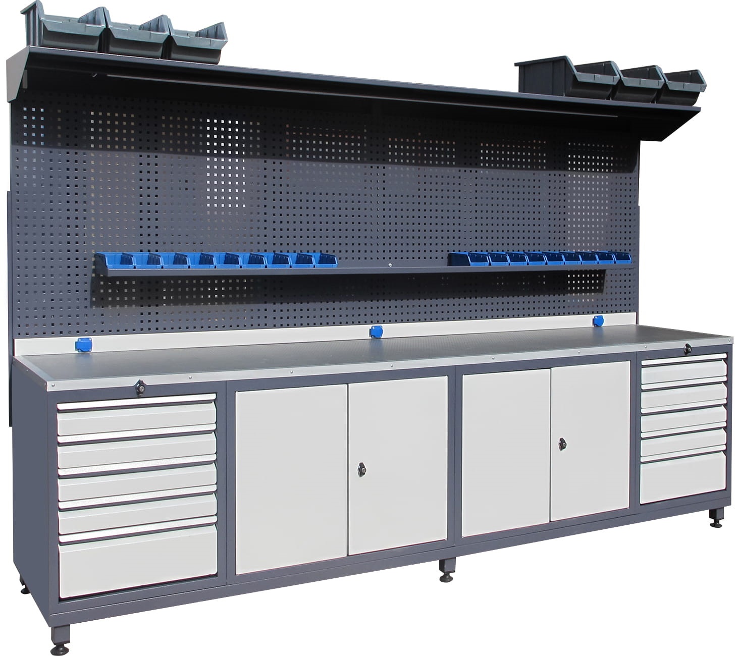 Panolu Çalışma Tezgahı, 10 Çekmeceli, Aydınlatmalı, 3 Prizli