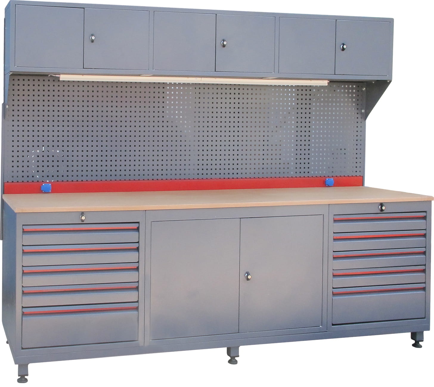 Panolu Çalışma Tezgahı, 10 Çekmeceli, Aydınlatmalı, 2 Prizli
