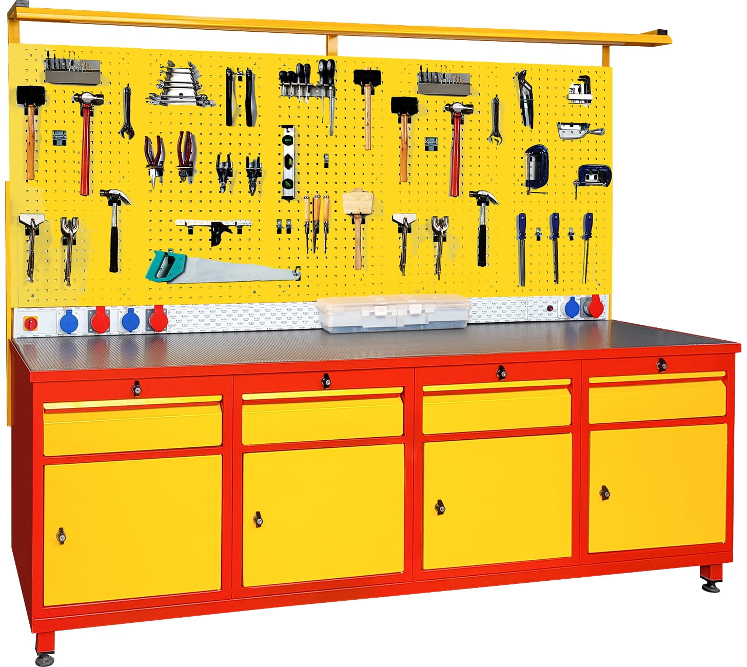 Panolu Çalışma Tezgahı, 4 Çekmeceli, Aydınlatmalı, 6 Prizli