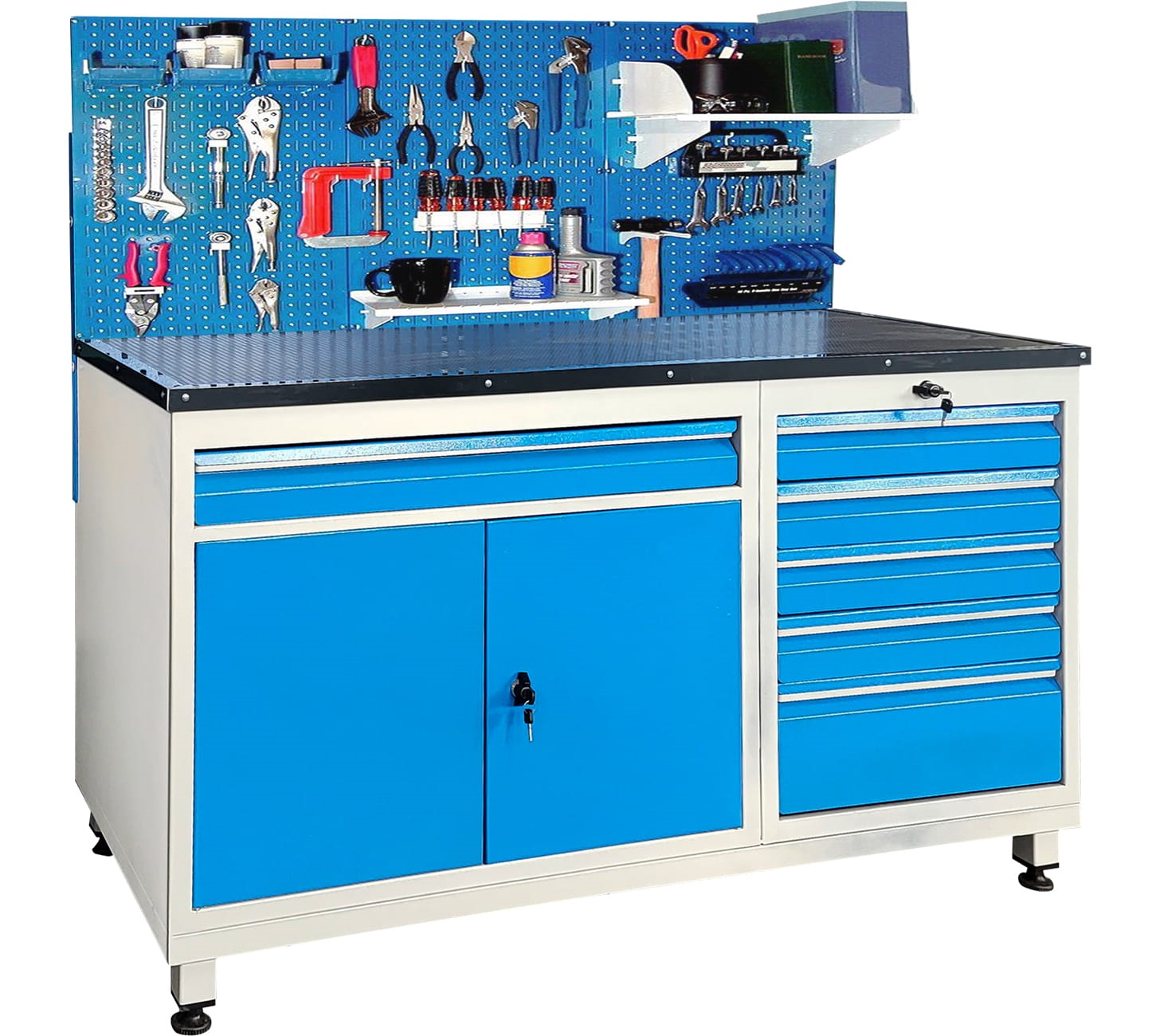 - Güvenlik ve Organizasyon: Tek noktadan kontrol sağlayan merkezi kilit sistemi. Çekmece iç tabanlarında hassas ekipman koruması için anti-statik / darbe emici sünger kaplamalar.