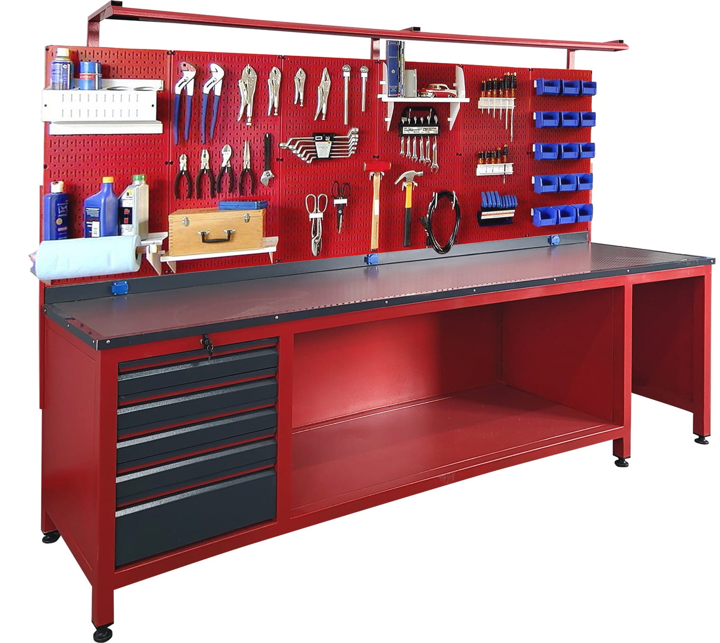 Panolu Çalışma Tezgahı, 5 Çekmeceli, Aydınlatmalı, 3 Prizli