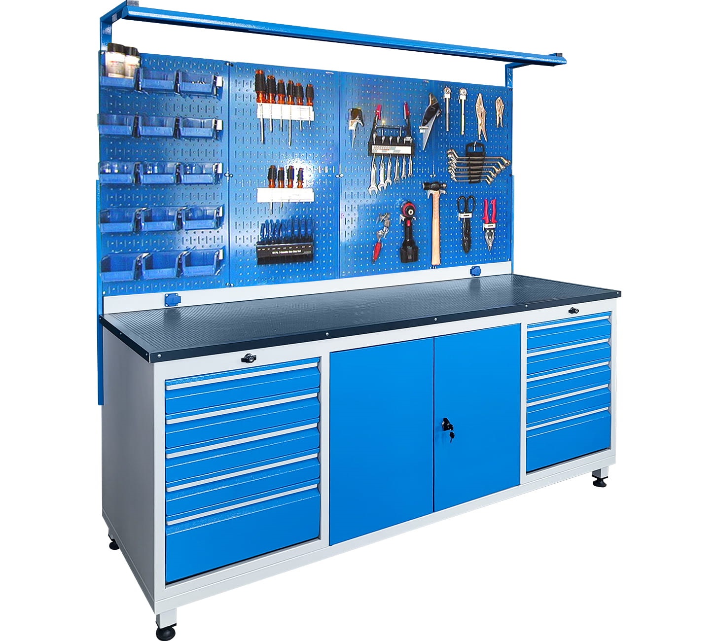 Panolu Çalışma Tezgahı, 10 Çekmeceli, Aydınlatmalı, 2 Prizli