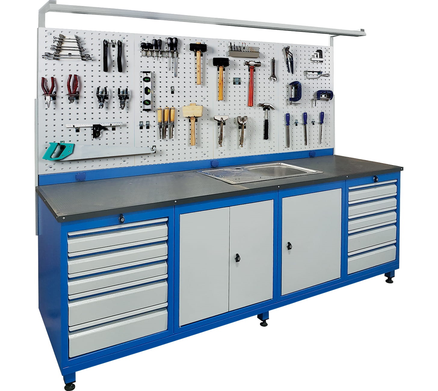 Panolu Çalışma Tezgahı, 10 Çekmeceli, Aydınlatmalı, 3 Prizli