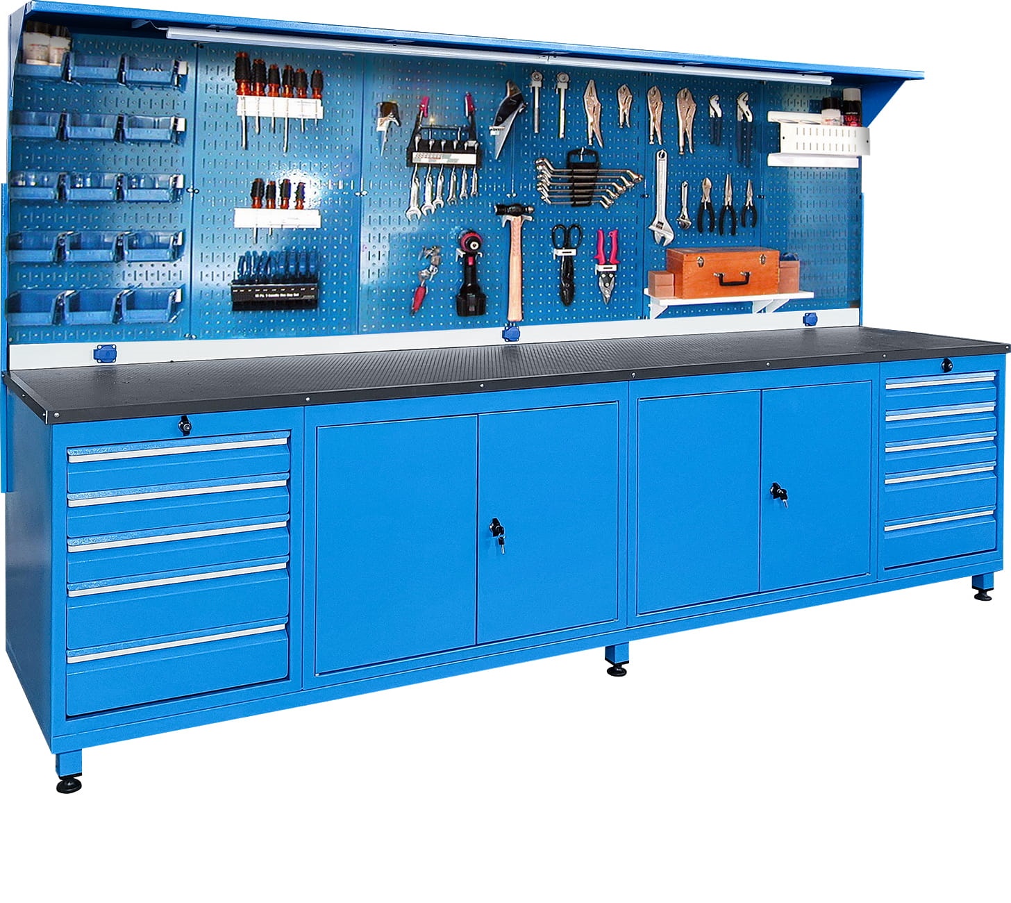 Panolu Çalışma Tezgahı, 10 Çekmeceli, Aydınlatmalı, 3 Prizli