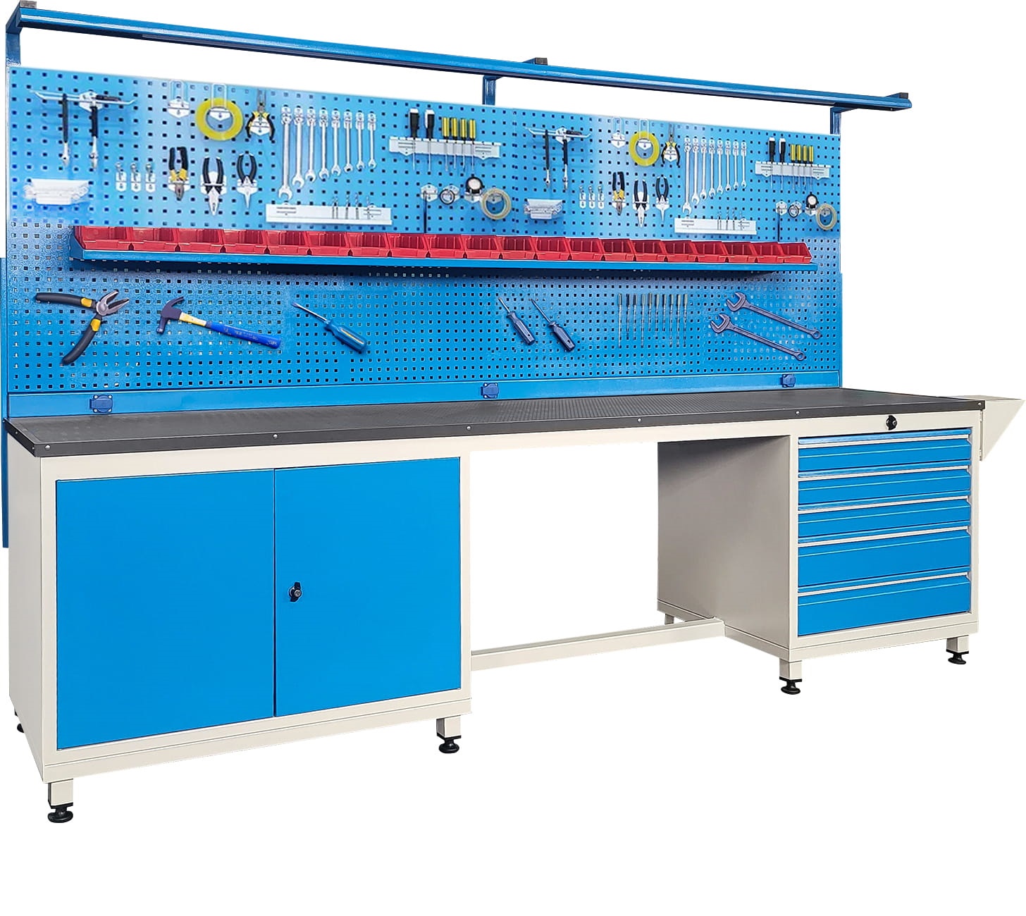 Panolu Çalışma Tezgahı, 5 Çekmeceli, Aydınlatmalı, 3 Prizli