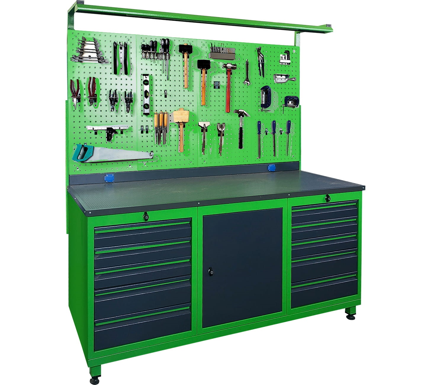 Panolu Çalışma Tezgahı, 10 Çekmeceli, Aydınlatmalı, 2 Prizli