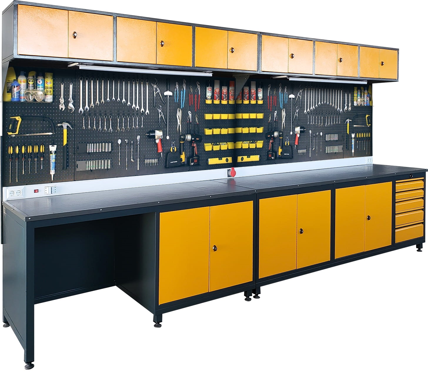 Panolu Çalışma Tezgahı, 5 Çekmeceli, Aydınlatmalı, 4 Prizli