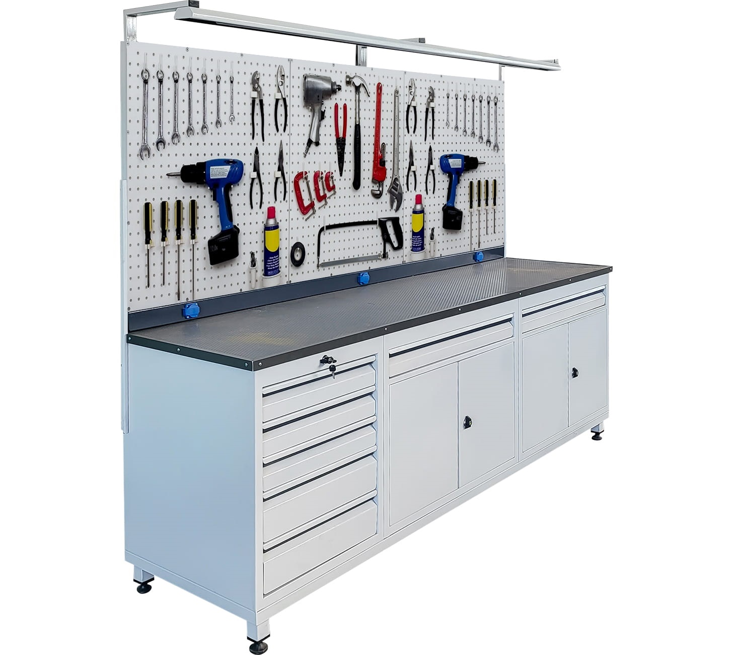Panolu Çalışma Tezgahı, 7 Çekmeceli, Aydınlatmalı, 3 Prizli