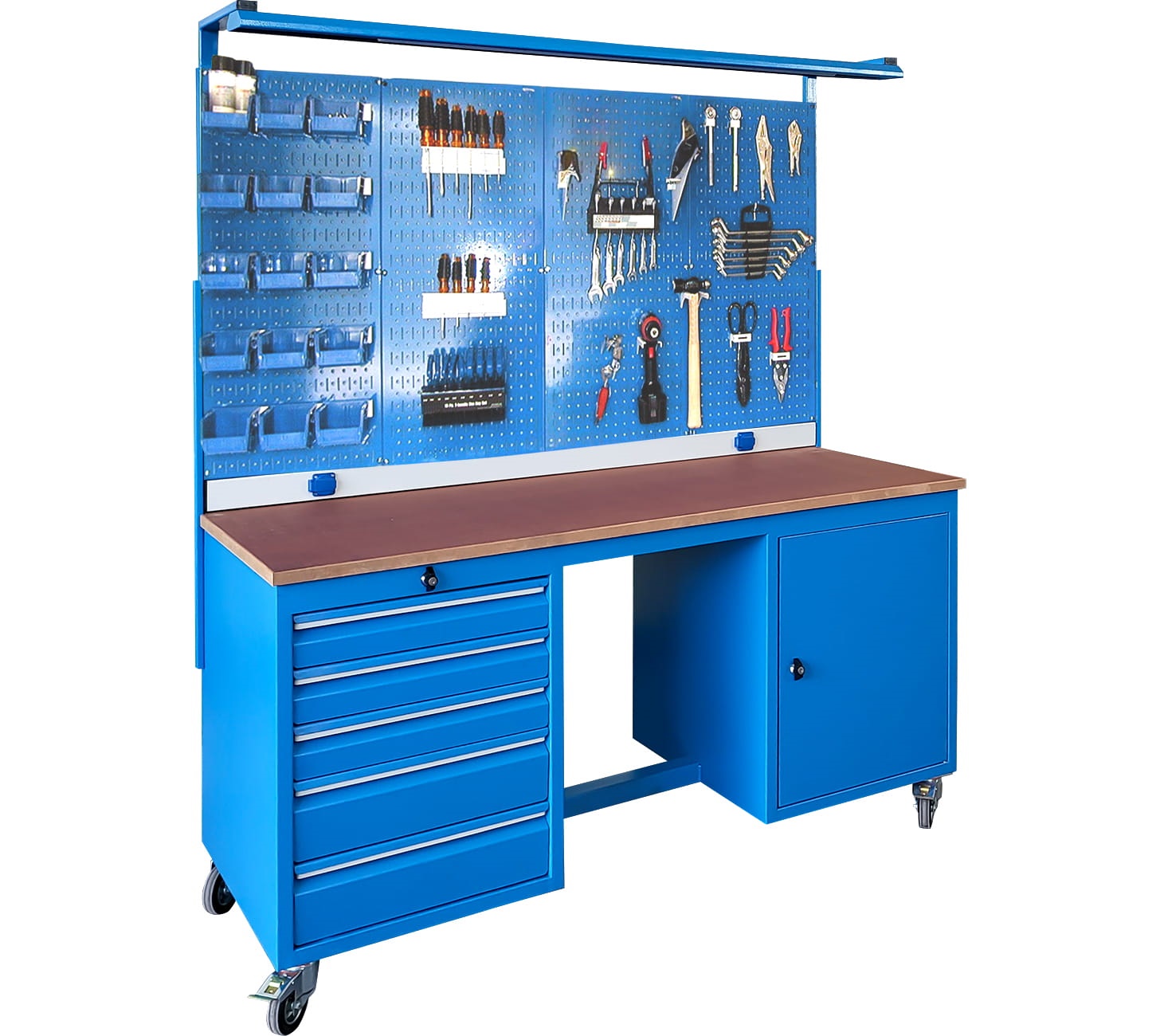 Panolu Çalışma Tezgahı, 5 Çekmeceli, Aydınlatmalı, 2 Prizli