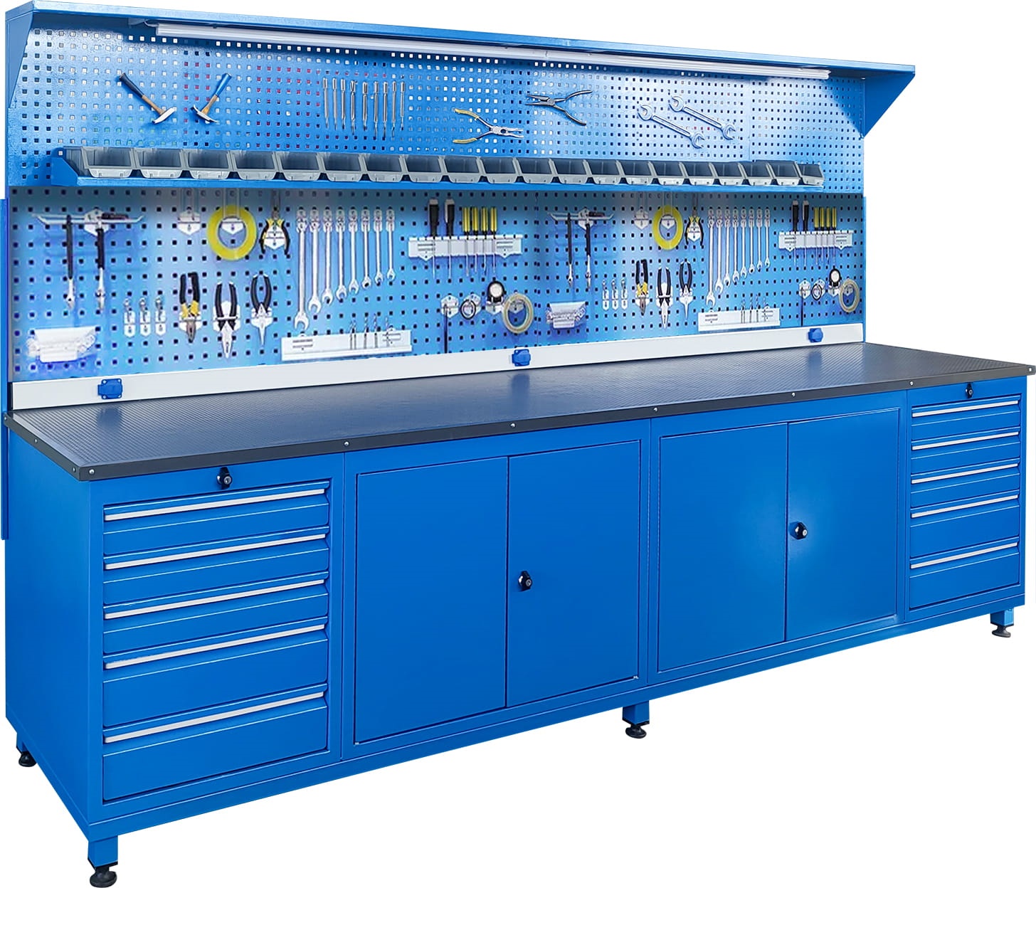 Panolu Çalışma Tezgahı, 10 Çekmeceli, Aydınlatmalı, 3 Prizli