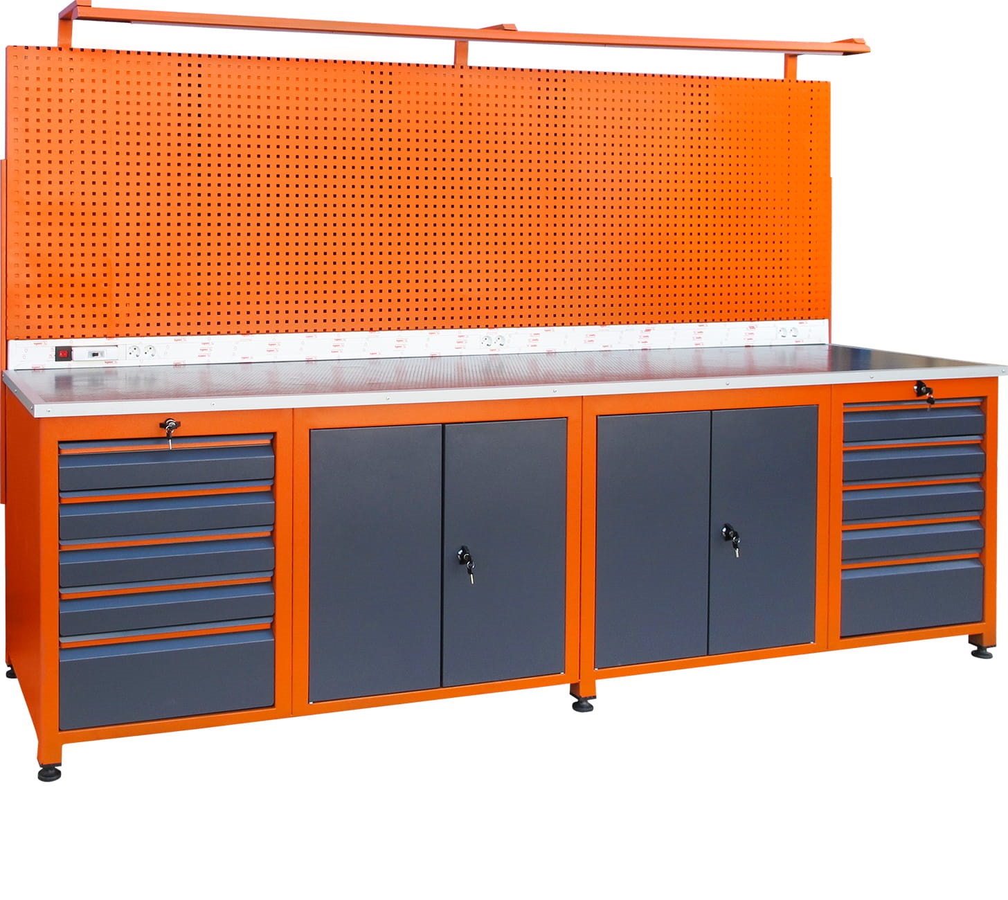 - Güvenlik ve Organizasyon: Tek noktadan kontrol sağlayan merkezi kilit sistemi. Çekmece iç tabanlarında hassas ekipman koruması için anti-statik / darbe emici sünger kaplamalar.