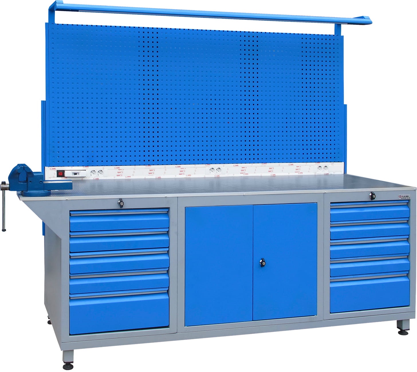 Panolu Çalışma Tezgahı, 10 Çekmeceli, Aydınlatmalı, 10 Prizli