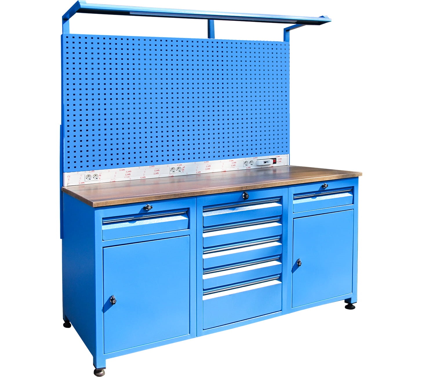 Panolu Çalışma Tezgahı, 7 Çekmeceli, Aydınlatmalı, 6 Prizli