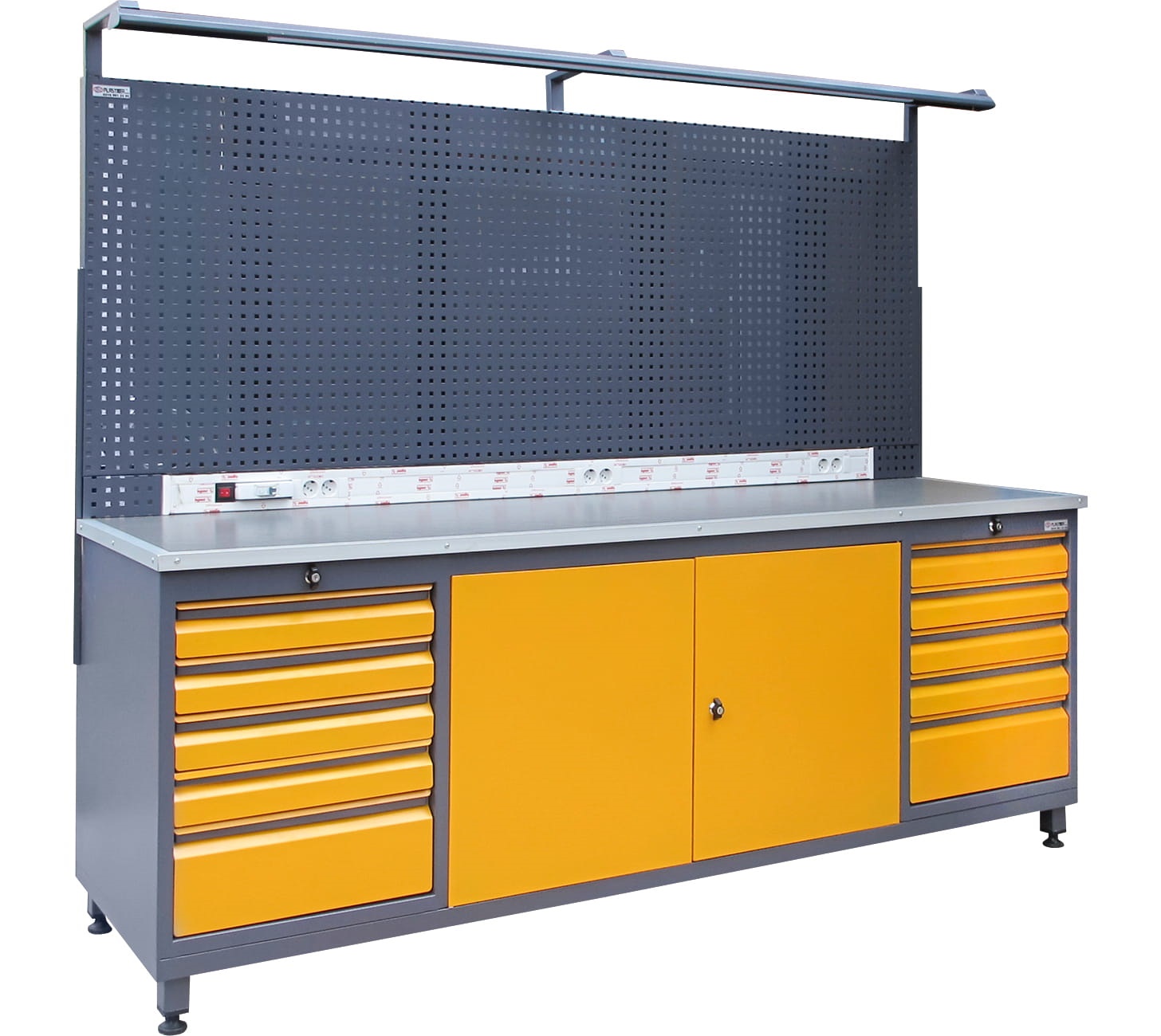 Panolu Çalışma Tezgahı, 10 Çekmeceli, Aydınlatmalı, 6 Prizli