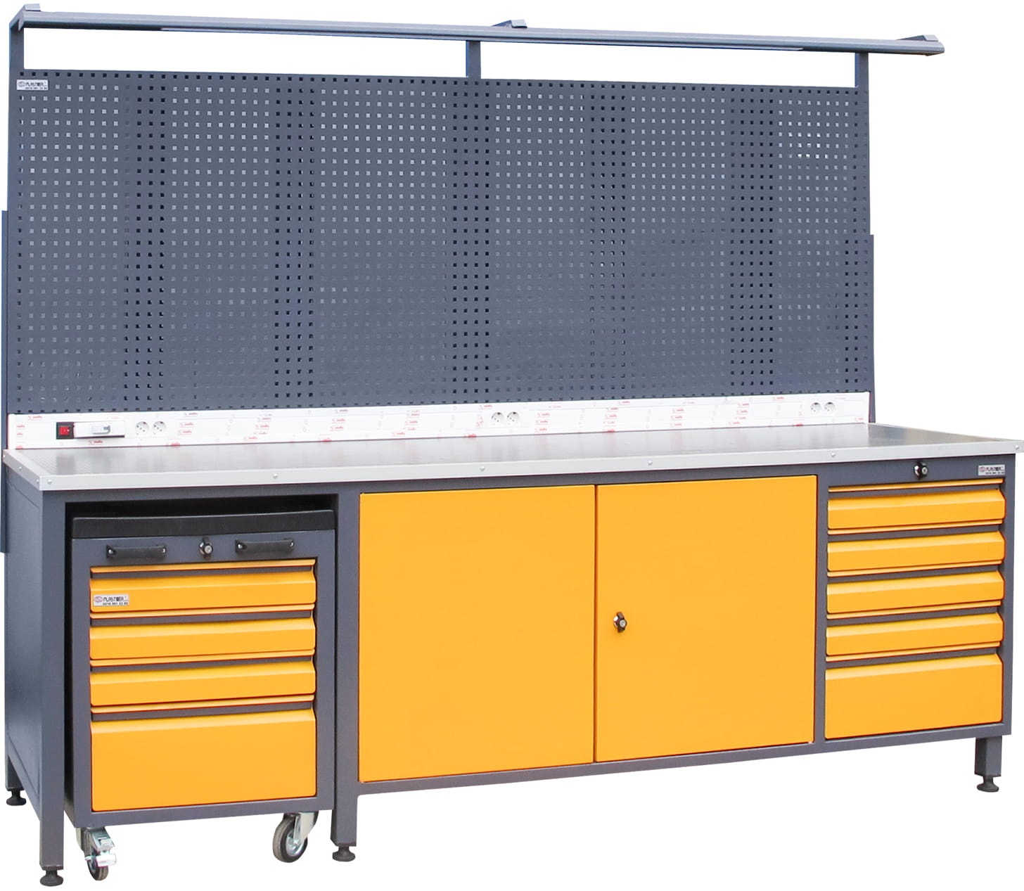 Takım Arabalı Çalışma Tezgahı, 9 Çekmeceli, Aydınlatmalı, 4 Prizli